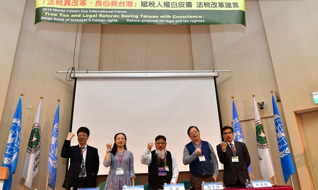 日前2019年世界公民日國際論壇以「法稅真改革、良心救台灣」為主題,邀請各界專家學者於台大梁國樹國際會議廳發表「賦稅人權白皮書」與「法稅改革建言」。對歷史頗有研究的生物醫學公司經理人Chih Chung Wu,呼籲政府效法美國稅制改革,建立稅務制衡機制,才能維護台灣的自由民主。從司法機關執法人員黃小姐的報告顯示,台灣稅務行政訴訟在程序法制上還有很多需要改進的地方,尤其在舉證責任和協力義務方面。聯合國/NGO世界公民總會人權委員會觀察員高鼎懿則指出,延宕23年的太極門稅務冤案,刑案部分已於96 年7 月13 日由最高法院判決確定無罪、無違反稅捐稽徵法,且認定敬師禮金是贈與,依法屬免稅所得,證明這個案件一開始就是個冤案,至今這張稅單還在,政府的誠信在哪裡?