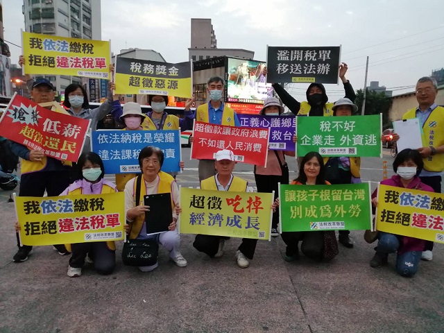 川普2018年減稅,吸引2兆5000億美元資金回流,為美國經濟帶來非常大效益。反觀台灣,因為稅制不公,不友善的稅賦環境,導致外資不來,企業出走,人才外流、整個經濟環境越來越糟。依據國內最大兼差外包網站公布的「上班族貧窮痛苦指數大調查」發現,被認定是「中產階級」的上班族,有七成五自認是「貧窮」一族,貧窮痛苦原因來自「入不敷出」。法稅改革聯盟志工們繼續為台灣的未來努力,4月初清明節連假前後,推動稅改不停歇,在稅捐稽徵所前、中壢火車站前舉牌,宣導法稅改革的理念。