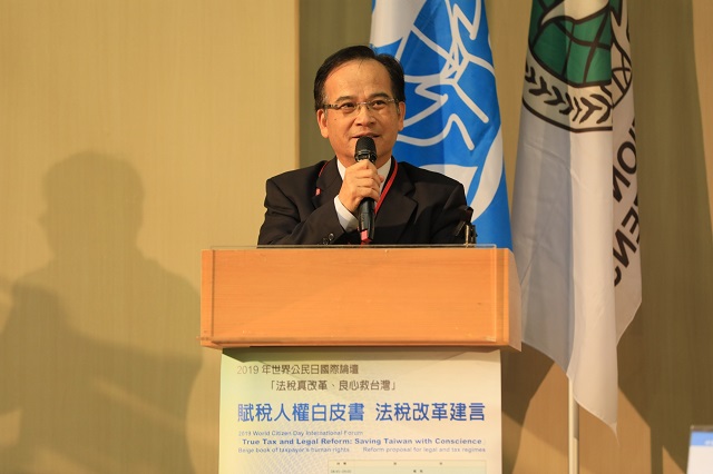 聯合國NGO世界公民總會及法稅改革聯盟等15個單位,3月30日共同於台大梁國樹國際會議廳舉辦2019年世界公民日國際論壇「法稅真改革、良心救台灣」──賦稅人權白皮書 法稅改革建言。前台南縣長蘇煥智律師直言,總統大選即將到來,主要政黨及參選人應要非常重視法稅改革議題,法稅改革聯盟可在此時發揮最大的影響力。