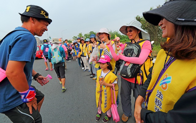 志工王先生感動地表示,多天一路走來,再次見證台灣最美的風景是人。不論是在路邊奉獻或跟隨進香的香燈腳,感恩將自己最好的食物與人分享或是給彼此加油打氣。一路上很多民眾看到法稅改革聯盟的志工,也都主動的舉起大姆指對志工表示辛苦了,謝謝志工們堅持做對的事。王先生說,台灣人民如此善良,這塊土地如此美麗,實在不容許不肖官員為非作歹,法稅改革這條路雖然辛苦,但他相信天理昭昭,人在做,天在看,媽祖一定會保佑台灣。