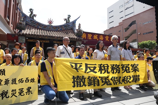 傳說中,城隍爺管理人類一切行為善惡,同時,祂也是人民的守護神。位於大稻埕也是二二八事件發生地附近的霞海城隍廟,每年都有許多人,因為遭受冤屈而到城隍爺面前申冤。今天8月14日,是中元節前夕,法稅改革聯盟志工與一群稅災戶,一同來到霞海城隍廟,為暗夜哭泣的稅災戶與所有政治迫害的受難者申冤,希望城隍爺庇佑台灣百姓選賢與能,讓真正能體察民意,以民為本,有連署稅改宣言之2020年的總統及立委候選人當選。不願支持法稅真改革之惡官,終將遭千萬百姓唾棄,唯有落實法稅真改革,健全法稅體制,讓人民安居樂業,使國家富強康樂。