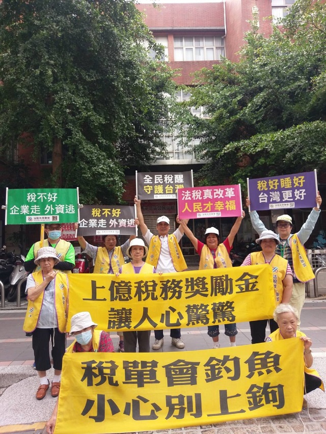 依據法務部行政執行署統計,全台新增欠稅欠費被強制執行案件2018年達到1,021萬件,台灣稅災氾濫,法稅改革聯盟志工堅持推動法稅改革,利用街頭宣導改革理念,邀請全民連署稅改五大訴求、十大建言及賦稅人權宣言,尤其是沒有法源依據的「稅務獎勵金」,被外界質疑是引起濫權徵收之動機,應該廢除。稅務人員原本的查稅獎金,早在2004年就由立法院三讀通過廢除,然而無良立委護航,巧立名目,讓上億的「稅務獎勵金」預算過關,法稅改革聯盟志工呼籲全民覺醒,透過選票選賢與能,一起監督政府,搶救自己的賦稅人權。