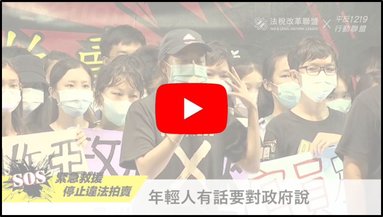 18:00 公布行動訴求1.停止違法拍賣; 2.落實除錯機制; 3.建立救援制度