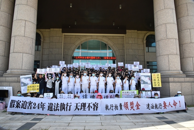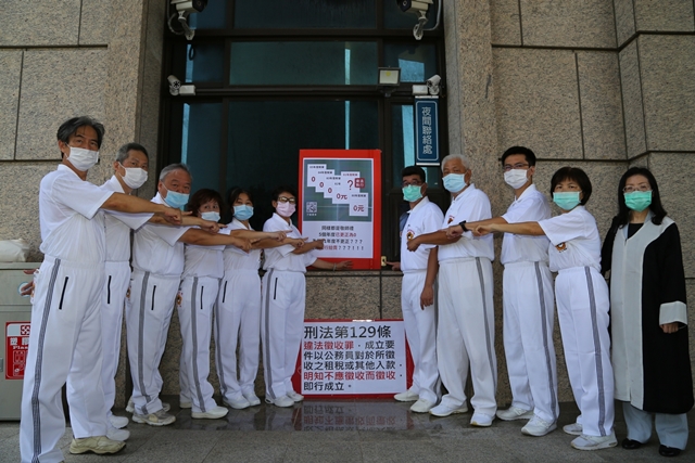 7月13日上午太極門弟子代表10人到新竹地檢署按鈴申告,控法務部行政執行署新竹分署分署長李蕙如、前法務部行政執行署新竹執行處處長張銘珠、劉邦繡,明知不應徵收卻繼續違法拍賣,嚴重侵害太極門師徒的宗教自由、思想自由、信仰自由、文化生活權及侵害人權,涉犯刑法第129條違法徵收罪。平反1219行動聯盟百人聲援太極門!