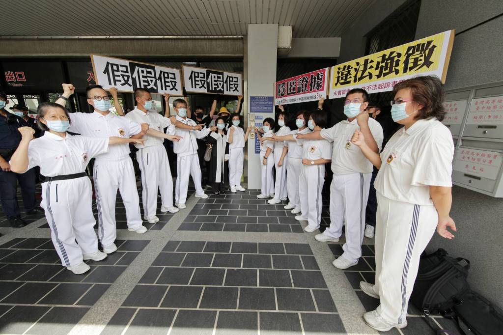 被稱為「台灣法稅照妖鏡」的太極門假案,爆出官員貪圖獎金違法徵收內幕,引發各界關注。7月17日(五)上午10點半,太極門義務辯護律師蔣瑞琴及10位太極門弟子代表,再度前往台中地檢署按鈴控告前中區國稅局長鄭義和、稅務員彭明珊及林雅菁涉犯刑法第129條違法徵收罪。近200位平反1219行動聯盟志工也到場聲援。
