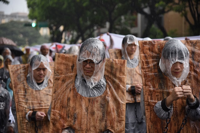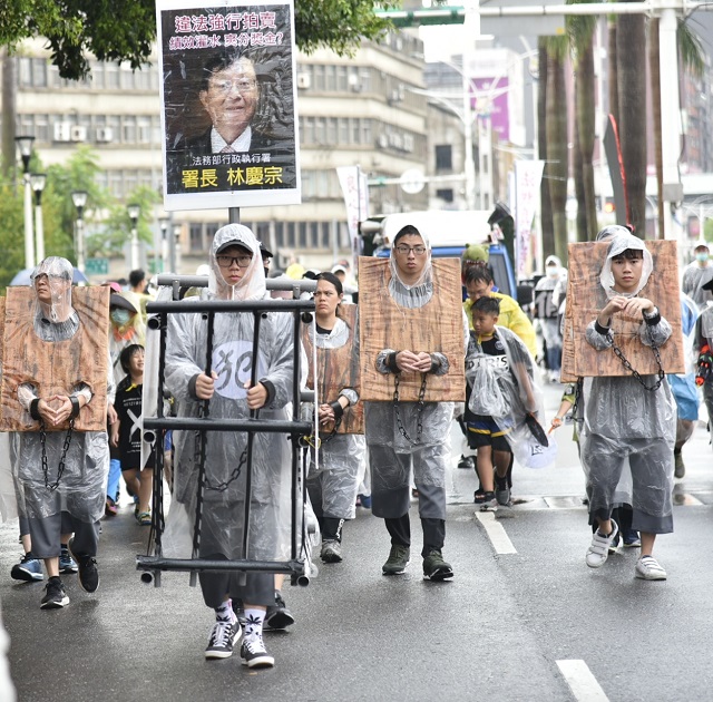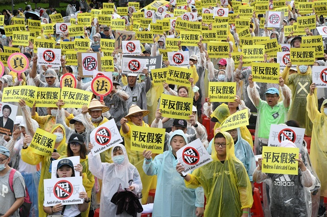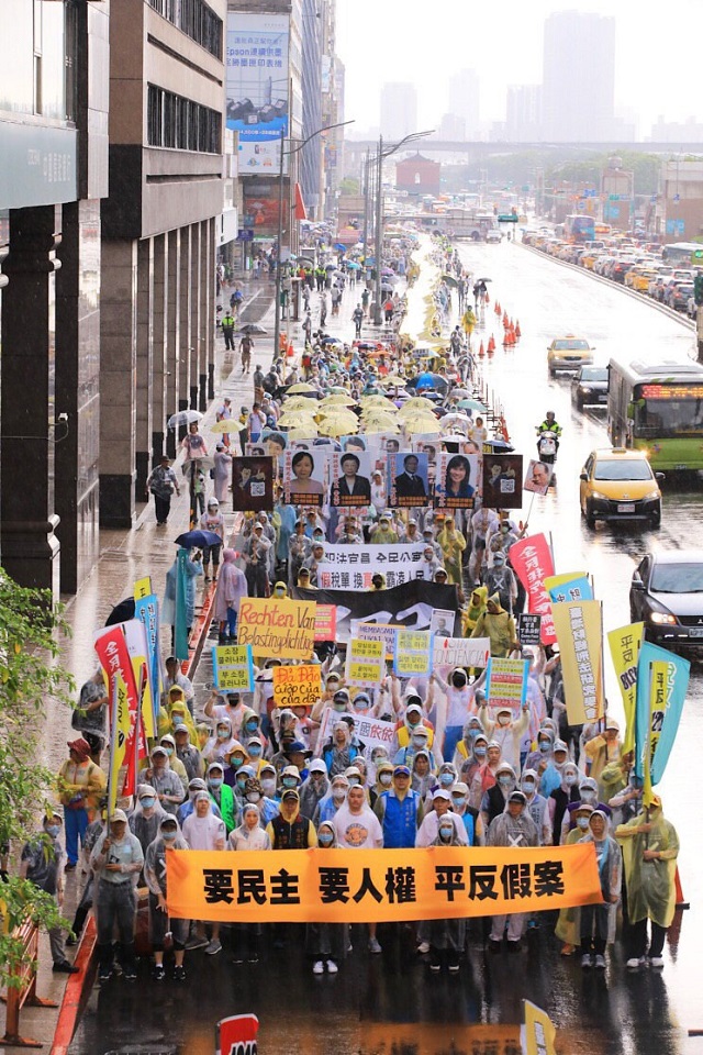 26日近萬名來自全國各地民眾,在凱道冒著大雨參與「反造假運動大遊行」,扛著300公尺大布條,向蔡英文總統與台灣人民揭發惡官貪圖獎金、欺上瞞下、製造假案的惡行。重大人權保障指標案例太極門假案,延宕24年未獲得真正平反,主辦單位平反1219行動聯盟及太極門等18個單位呼籲立即平反,落實「法稅真改革,良心救台灣」。遊行隊伍中,也有數百位民眾來自新竹,包括民意代表、教育界、科技業及各界代表……,特地北上為反造假、捍衛人權、護衛民主法治共同發聲。