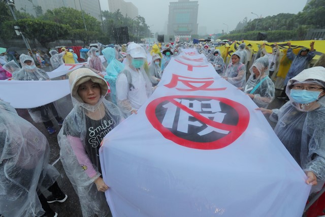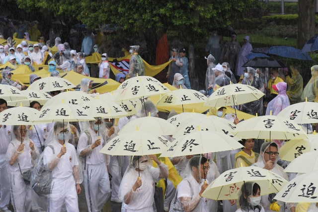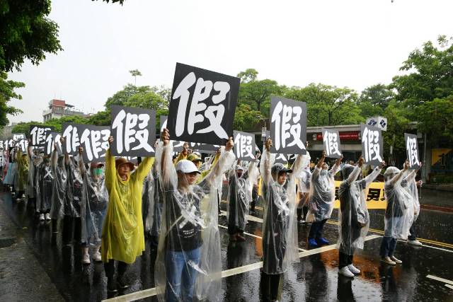 7月26日下午18個公民團體及民眾頂著大雷雨參與「反造假大遊行」,近萬人次齊聚凱道力挺太極門,各界學者專家輪番上台,揭露14大惡官搶績效、貪獎金、枉法裁判等惡行惡狀,籲請蔡總統主持正義。活動現場更有來自美國、加拿大、阿拉伯聯合大公國、英國、馬來西亞、韓國、越南、日本、法國、巴拿馬、南非、賴索托等國太極門海外弟子和聲援人士親自參與及連線觀看直播關注,將延宕24年的太極門遭政治整肅迫害假案真相,公諸於國際社會。