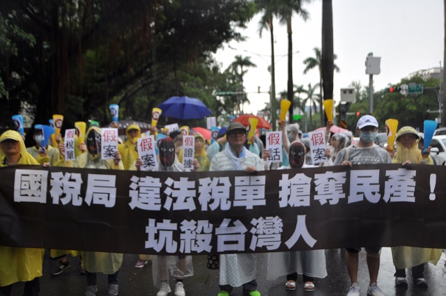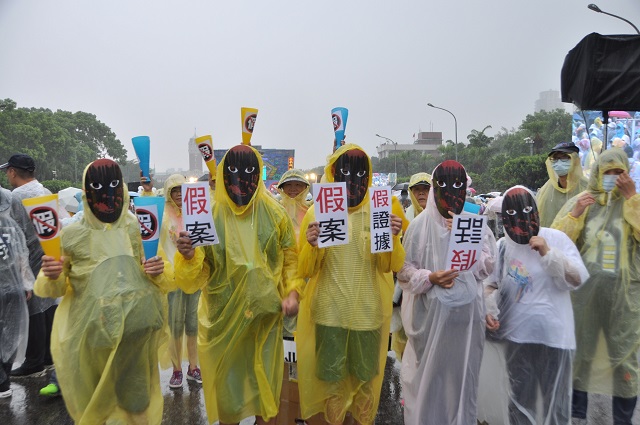 7月26日下午在凱達格蘭大道,集結了來自全國各地的民眾,參與民眾不畏雷雨,仍熱情參與「反造假大遊行」。台灣獨特獎金制度造成不肖官員「造假」,為了貪績效、圖獎金,人民成為不肖公務員的提款機,透過造假的手法-──假證據、假公務員、假面法庭,開出假稅單。現場並由學者專家揭開1996年太極門被政治整肅真相,假案亂辦、搶奪民產實錄。桃園區里長及各地鄉親特地北上聲援,桃園區明德里里長廖坤徽表示,台灣在法稅方面應該更透明,讓台灣不要再有假稅單的案件發生。桃園區新埔里里長官正平服務團隊鄭先生表示,自己參加這個盛會,為人民伸冤,雖然風雨很大,但是風雨生信心,太極門已經伸冤24年,希望今年來是最後一次了,政府應該勇於認錯,還給太極門清白。