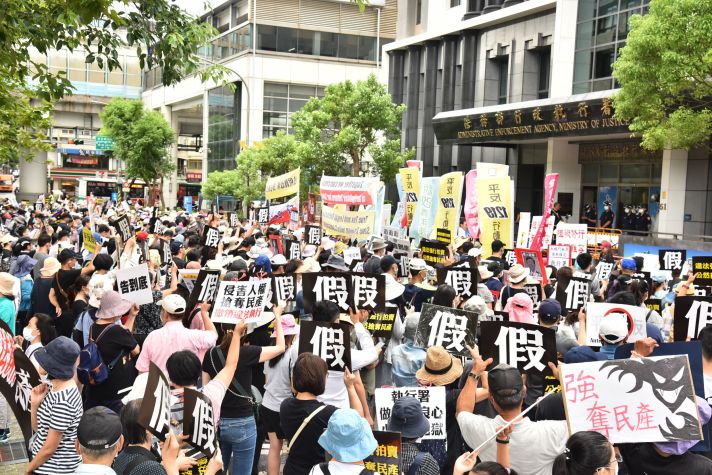 現場民眾陳小姐說,108年欠稅欠費待強制執行案共1104萬件,裡面抄家滅門式的執行不知凡幾。人在做天在看,民眾一定會抗爭到底,絕不容為圖獎金的違法官員顛倒是非。