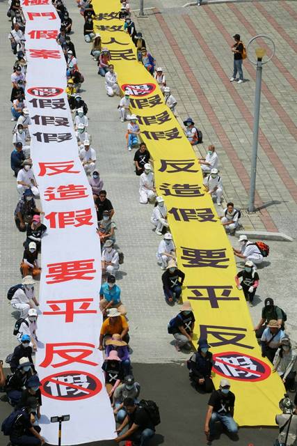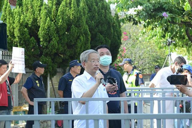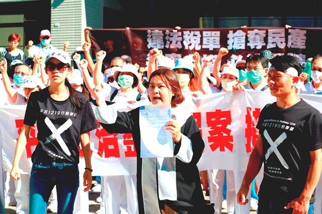 「財政部與執行署聯手霸凌太極門,抹黑欠稅!」7月31日上午聲援群眾聚集行政執行署苗栗分署前,抗議執行署明知最高行政法院判決認定國稅局81年稅捐有錯,太極門並無欠稅,卻仍違法強行拍賣太極門位於苗栗的土地,更違反公開投標作業程序,以黑箱作業引發眾怒。法稅改革聯盟聯盟召集人、前台大法學院教授陳志龍赴苗栗聲援,當場提出5點異議。下午平反1219行動聯盟、法稅改革聯盟及太極門弟子代表60多人再度前往士林地檢署控告法務部行政執行署署長林慶宗、副署長陳盈錦涉犯違法徵收罪。