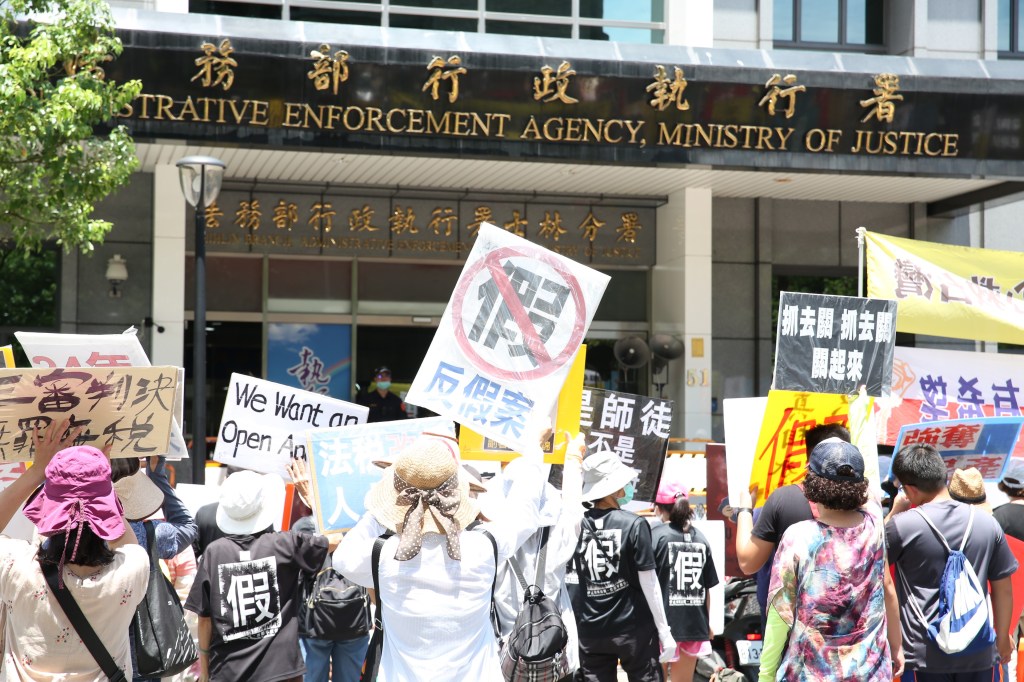 隨著「一隻鳥仔哮啾啾」悲苦的歌聲在法務部行政執行署前播放,平反1219行動聯盟、法稅改革聯盟及太極門弟子等民眾持續在法務部行政執行署陳情抗議,已經滿月!抗議修行場所要被違法強行拍賣,質疑署長林慶宗、副署長陳盈錦涉嫌瀆職,無視官方證據證明太極門無罪無稅,仍抹黑太極門欠稅,知法犯法,違法強行拍賣太極門資產,各界質疑是否為獎金不惜集體犯罪?