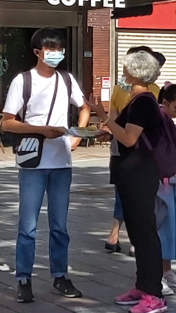 聲援的林姓法稅志工說:假如沒有冤情,人民何苦陳情24年?小志工樂樂趁暑假出來發傳單,他說:要來做好事,一起為國家加油!