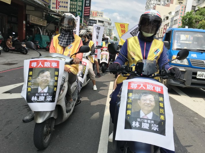 民團也組織機車連隊,車身前後四周均貼上「尋人啟事—林慶宗」及照片,插著「執行署搶奪民產」關東旗,於高雄市區大街小巷協尋失蹤人口林慶宗,要他出來面對人民;地面部隊的宣傳志工也在法務部行政執行署高雄分署前舉牌抗議,希望葉自強分署長停止違法強行拍賣,卻不見任何官員回應,民眾質疑,我們真的是民主國家嗎?