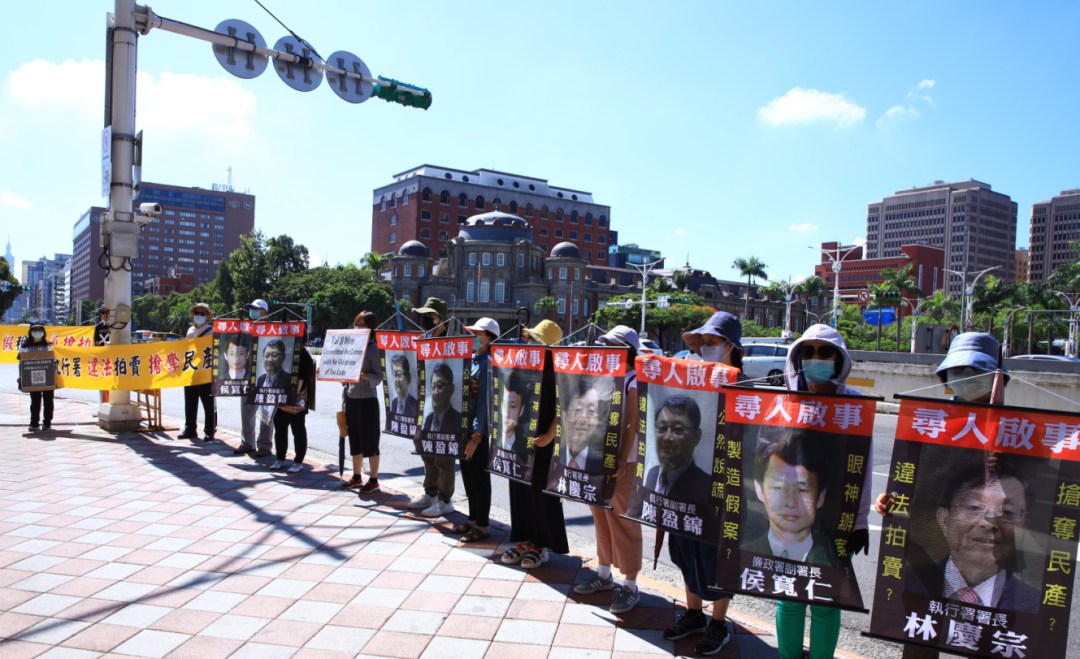 近日全台包含台北車站人潮聚集等地點,隨處可見「尋人啟事」告示,找尋的竟然是法務部行政執行署林慶宗署長、陳盈錦副署長及前檢察官侯寬仁。民團以舉牌、布條以及宣傳車、揹電視,發起「協尋」通告,請全民一起幫忙找尋。前台大法律系陳志龍教授表示,他們就是形式辯證論的代表,法學觀念是有問題的,他們活在納粹時代、戒嚴威權時代,而不是當今民主時代。官員以權力辯證,說判決有既判力必須服從,「然而亂弄的判決還要遵守」?