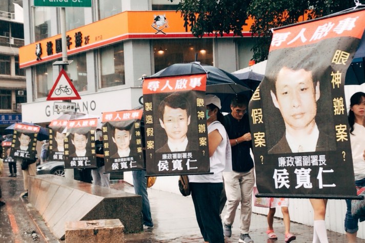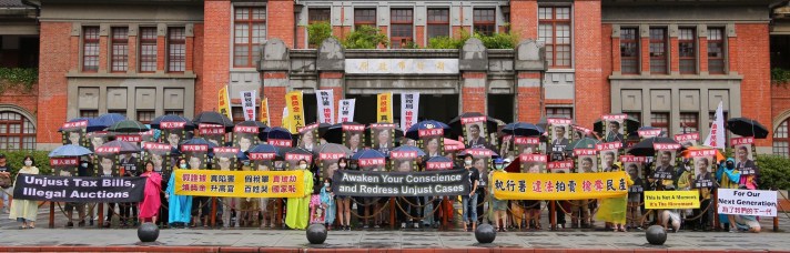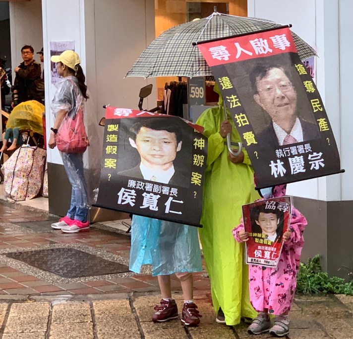 近日法務部行政執行署強拍太極門土地,惹怒一票來自竹科的科技人。他們指控法務部廉政署副署長侯寬仁,24年前以假證據、假證人及「眼神辦案」非法起訴太極門;24年後又與行政執行署正副署長林慶宗、陳盈錦聯手違法強行拍賣,嚴重傷害太極門名譽,更影響他們在太極門修養身心的基本權利。連續一個多月,平反1219行動聯盟、法稅改革聯盟、太極門弟子及支持民眾在行政執行署前抗議陳情,然而署長林慶宗與副署長陳盈錦不但未曾露面,更在7月31日違法強行拍賣,並將在8月21日再進行第二次強行拍賣,引起眾怒,太極門弟子15日與民團上百民眾冒雨到新竹市東門城、新竹市政府、竹北文化公園遊街,高舉三人頭像的尋人啟事海報、發傳單、放送影片,請民眾一起協尋這些神隱官員,也提醒民眾小心被違法強制執行。