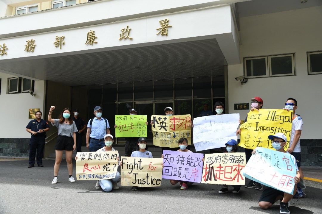 監察院列為重大人權保障的太極門假案,近日傳出行政執行署官員為了績效要藉假稅單強行拍賣太極門資產。法稅改革聯盟、平反1219行動聯盟與太極門青少年發動快閃行動,每天中午12點19分,到總統府及附近街道進行快閃,8月18日選在廉政署開砲,要求假案始作俑者–現任廉政署副署長侯寬仁下來道歉。前台大法律系教授陳志龍也到場指出,太極門案的源頭就是1996年侯寬仁不依證據、法律,濫用檢察官職權產生的假案,持續了24年,竟然現在執行署還要分1991年到1995年檢舉獎金,這就是貪污,這對廉政署是諷刺,全台灣系統性貪瀆嚴重,廉政署副署長應該要下台!