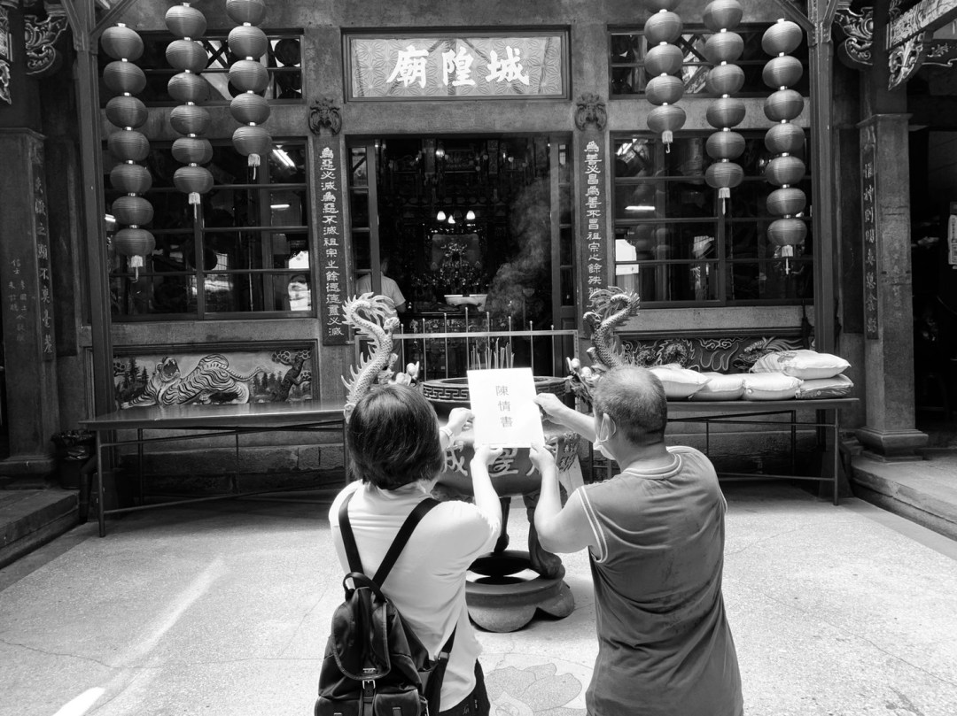 圖二: :志工們誠心祈求城隍爺啟發不法官員的良心,幡然悔悟做對的事情。
