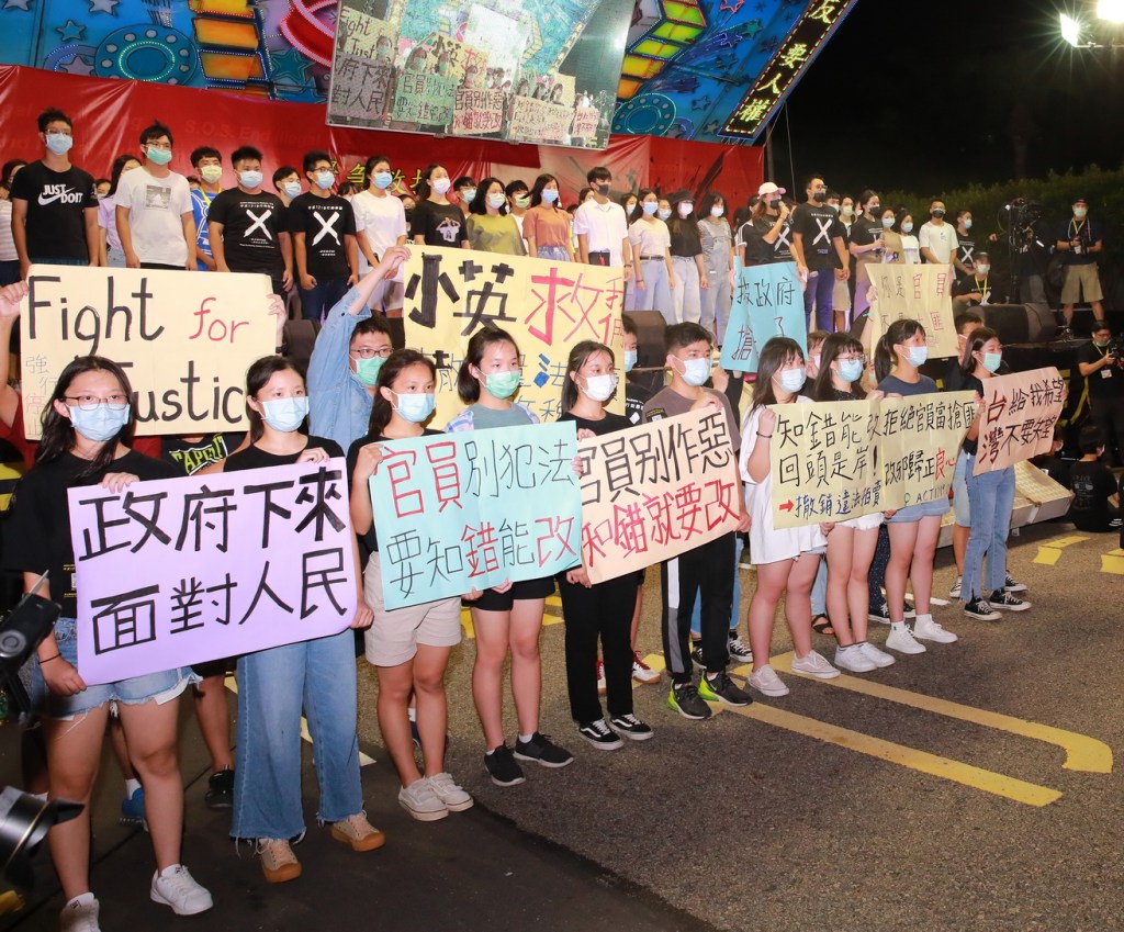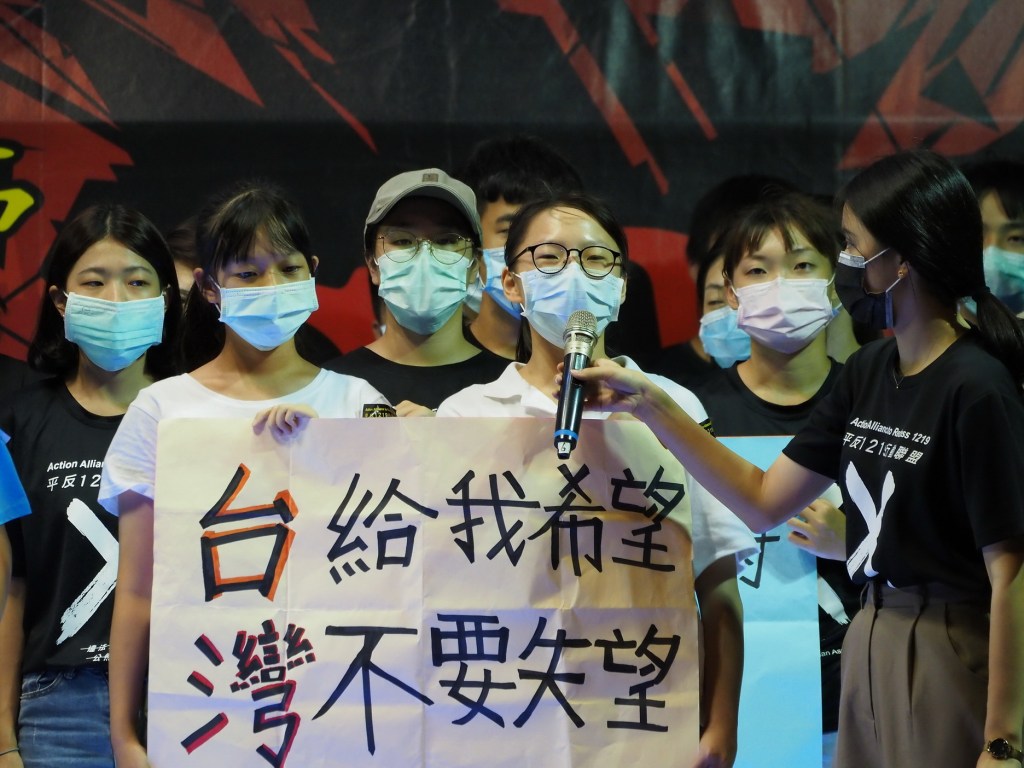 「政府下來面對人民!」「我是國中生,也是台灣人民,我們是多餘的嗎?」「不要侮辱台灣的名譽!」「請找回你們的良心結束這一齣鬧劇!」