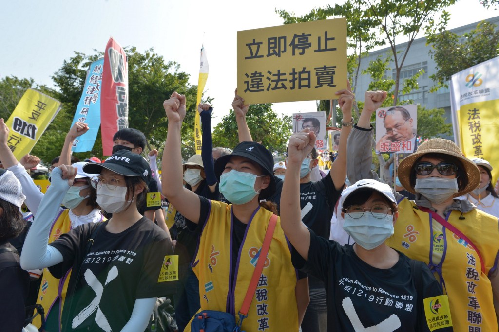 太極門沒欠稅卻遭違法強行拍賣,8月21日在太極門弟子、法稅改革聯盟、平反1219行動聯盟等2千人到行政執行署新竹分署苗栗辦公室抗議,太極門土地被違法拍賣,流標後收歸國有。現場所有民眾與直播前的網友同時見證到國稅局與執行署聯手搶奪民產,官兵變強盜?
