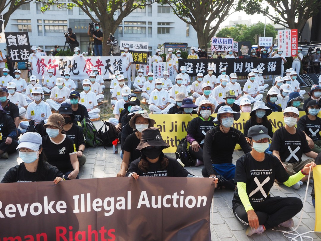 一宗自始造假的「假案」,政府假案亂辦?太極門弟子林小姐控訴,24年前侯寬仁檢察官以眼神辦案,指揮媒體大肆渲染報導,非法起訴太極門,造成上萬個太極門弟子名譽受損,甚至家庭破碎。明明最高法院已經判決確定無罪無稅,沒想到稅案卻延宕24年未解決,8月21日行政執行署還聯手國稅局違法拍賣太極門土地,強行收歸國有,嚴重侵害人權!網友批,行政執行署陷總統於不義、陷國家於不公,台灣是強盜國家嗎?平反1219行動聯盟、法稅改革聯盟等民團在全台各地舉牌、拉布條聲援,表達搶救人權,捍衛台灣民主法治的決心。