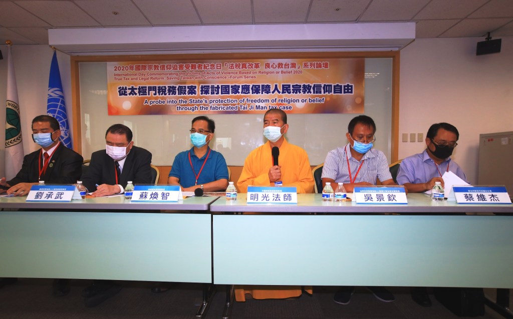 總統蔡英文在8月31日出席「109年表揚全國績優宗教團體頒獎典禮」時表示,台灣的宗教團體多元,並且也是文化以及民主自由的展現…,同時也強調宗教自由是台灣引以為傲的價值,台灣與世界接軌的橋樑。然而長達 24 年思想、信仰自由迫害案—太極門假案迄今卻持續延燒。在聯合國國際宗教信仰迫害受難者紀念日(8月22日)的前夕,太極門位於苗栗的土地遭行政執行署違法強行拍賣流標後直接收歸國有,此舉引發各界譁然,質疑迫害思想、信仰自由。22日在台北論壇中,在場與會者均同聲譴責政府迫害太極門與人權尊嚴,中國宗教徒協會理事長、中天寺住持釋明光法師也代表宗教界發聲呼籲,政府應痛改前非,不再犯錯,停止違法強行課稅,停止違法拍賣人民財產,停止侵害人民宗教、信仰與思想文化選擇自由。