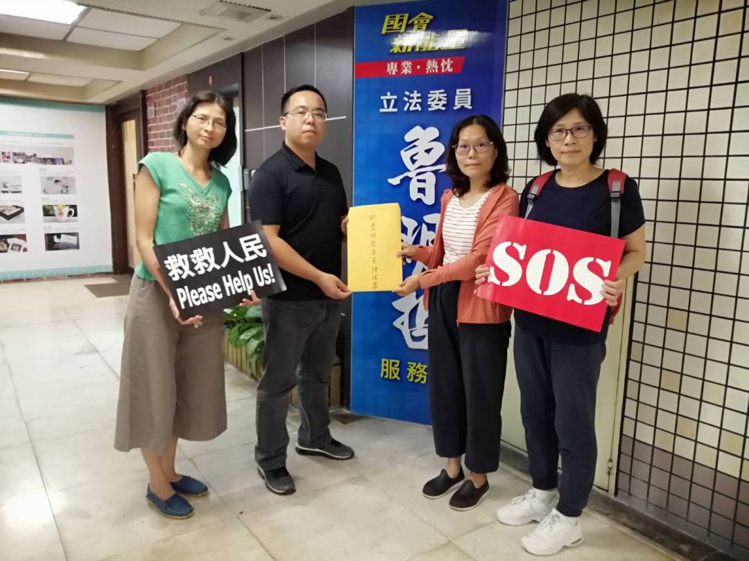 圖二、法稅改革聯盟、平反1219行動聯盟志工以及太極門弟子代表,於9月10日向呂玉玲委員陳情,由邱秘書代表(中)接下陳情書。
