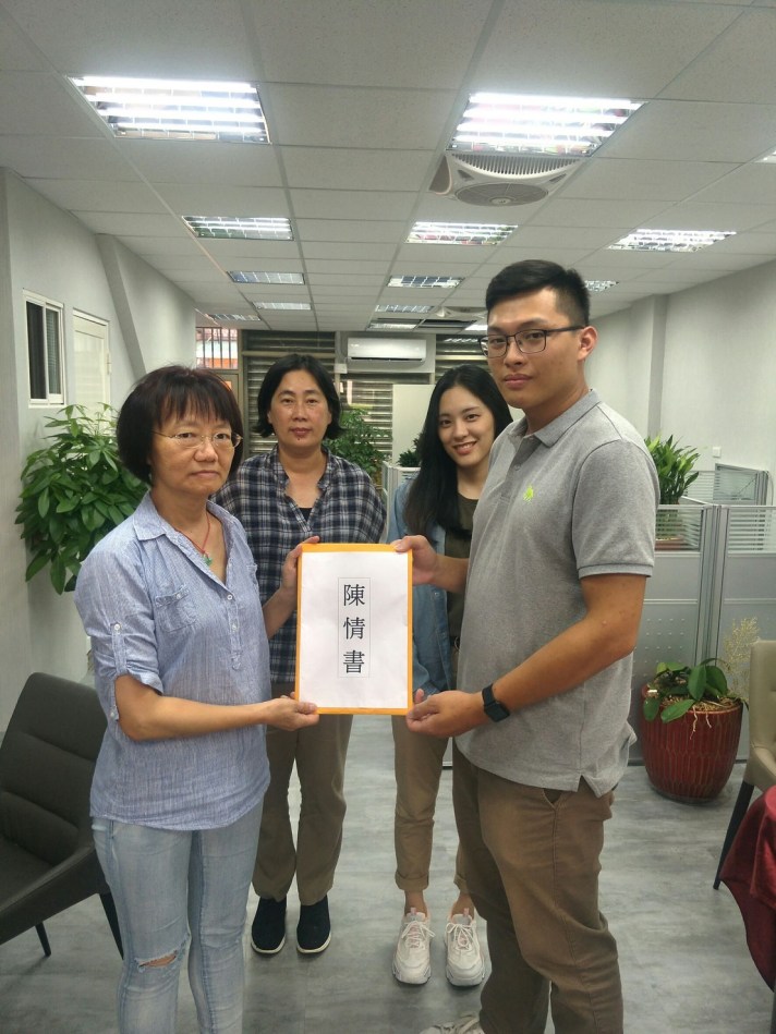 【記者李恆/汐止報導】24年前因檢察官候寬仁(現任廉政署副署長)憑空製造的假案而被起訴的太極門,在24年後的8月21日土地遭違法收歸國有,該案件引起各界震驚,法稅改革聯盟及平反1219行動聯盟等民間團體表達強烈不滿,9月10日法稅改革聯盟等民團前往汐止立法委員賴品妤服務處陳情,希望代表人民的立委能夠秉持為人民服務的心,推動及督促財政機關撤銷違法稅單,並將士地歸還人民。陳情書由二位年輕助理蘇子為及郭相立代表立委賴品妤接受。
