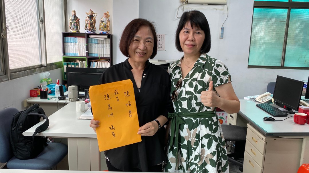 1.法稅改革聯盟志工陪同太極門弟子向內湖區市議員陳義洲陳情,由主任林玉霜(左)接下陳情書,對糾纏太極門24 年的假案深感遺憾!