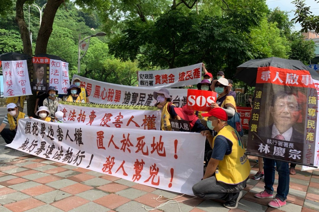太極門沒欠稅,土地卻遭行政執行署與國稅局強行拍賣、收歸國有,這樣嚴重的人權侵害事件竟然發生在21世紀、號稱民主自由的台灣!9月11日上午,平反1219行動聯盟、法稅改革聯盟等民團,以及當地選民,於立委蘇巧慧樹林服務處及吳秉叡位於新莊的新北總聯絡處,繼續聲援太極門,並於附近進行拉布條、舉牌等陳情活動,希望蘇巧慧與吳秉叡能夠為民喉舌、伸張正義,為太極門主持公道。法稅改革聯盟志工表示,8月21日行政執行署聯手國稅局違法拍賣太極門土地並收歸國有後,9月23日行政執行署新竹分署將針對該案進行土地分配。太極門假案根本就不應該拍賣,更不應該有所謂的「分配表」,對非法拍賣搶奪的民產進行分配,國家難道就跟強盜一樣?