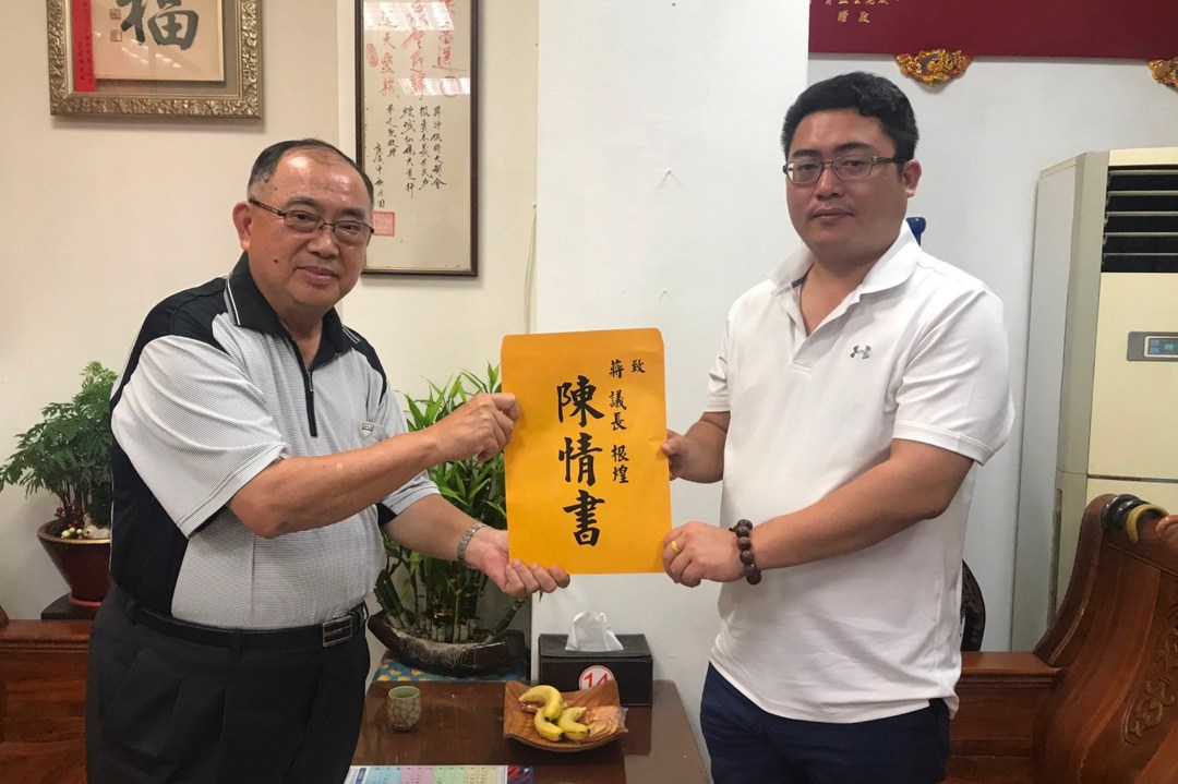 圖1:張時斌秘書代表蔣根煌議長,接下民眾的陳情書。