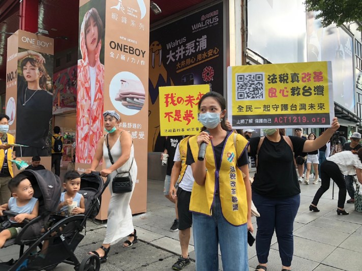 青年世代當道,對社會的議題也漸漸地帶動參與及關注,一般人都認為只要乖乖繳稅就好,可是如果是不該繳的稅,該怎麼辦?一群關心賦稅人權的「法稅改革聯盟」青年志工,9月12日下午來到台北市信義商圈街頭,拿著大聲公向往來的民眾表達訴求,聲援飽受稅災所苦的台灣人民,他們表示,台灣看似民主的社會,其實稅制卻還停留在威權時代,許多稅災戶的血淚故事,真實的在21世紀的民主台灣持續上演著,其中受害最久,受害人數最多的指標性案例,就是廣為人知的太極門假案。