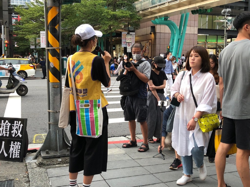 圖三:青年志工在人來人往的街頭上開講,希望能喚起更多人關注台灣的賦稅問題。