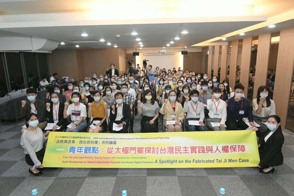 圖一:呼應「國際民主日」,法稅改革聯盟舉辦「法稅真改革、良心救台灣」國際論壇講座-邀請跨世代海內外青年就近日引起熱議的太極門案遭遇的人權困境,探討台灣民主人權保障未來藍圖!