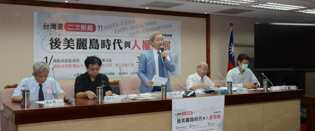 (記者劉麗美/台北報導)台灣歷經40多年集權統治,至今對社會、政治、經濟等各方面都有深刻影響,而後美麗島時代人權走向又如何?9/18 (週五) 立法院舉辦「後美麗島時代與人權發展記者會暨座談會」由臺灣財經刑法研究學會主辦,立法委員邱顯智辦公室協辦,美麗島事件義務辯護律師李勝雄、華人民主書院董事會主席曾建元、陽明大學醫學教授郭正典均到場參加,主持人陳志龍教授觀察發現,第一次解嚴的引爆案是美麗島事件,而現在太極門跟美麗島事件超級像,人民要出來抵抗假稅單。解決太極門假案,是台灣第二次解嚴關鍵點。