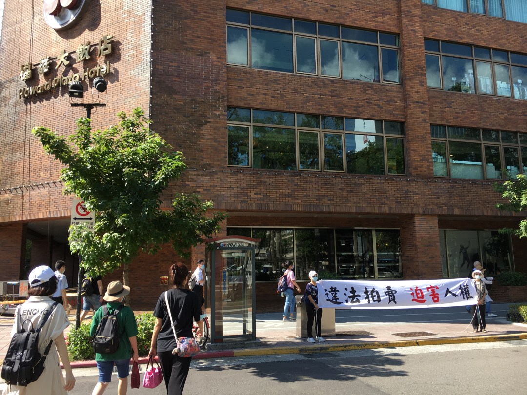 圖說一:太極門以「違法拍賣 迫害人權」打臉政府說一套做一套。