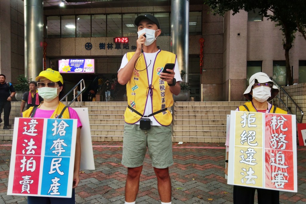 平反1219行動聯盟及法稅改革聯盟等民團9月19日全台串聯,在全省各地發起年輕人開講,講給政府聽,講給官員聽,講給全國人民聽。這股「改變世界的風」19日下午也吹進了新北市樹林區樹林火車站。小桃子志工指出,雖然台灣號稱亞洲第一個自由民主國家,但是,台灣的法稅體制至今還停留在威權時代,國稅局、行政執行署為了貪圖績效獎金,可以亂開稅單、聯手搶走你的錢!曾經發生有大學生沒有打工、沒有收入,竟也收到假稅單;年輕人從國外把技術帶回來投資,也收到假稅單,甚至被限制出境,最後搞到妻離子散!小桃子表示,若台灣的法稅體制再不改革,下一個受害者可能就是你和我。她同時邀請民眾拿一張傳單,上面有著非常重要的資訊,可以保護自己的荷包與權益!