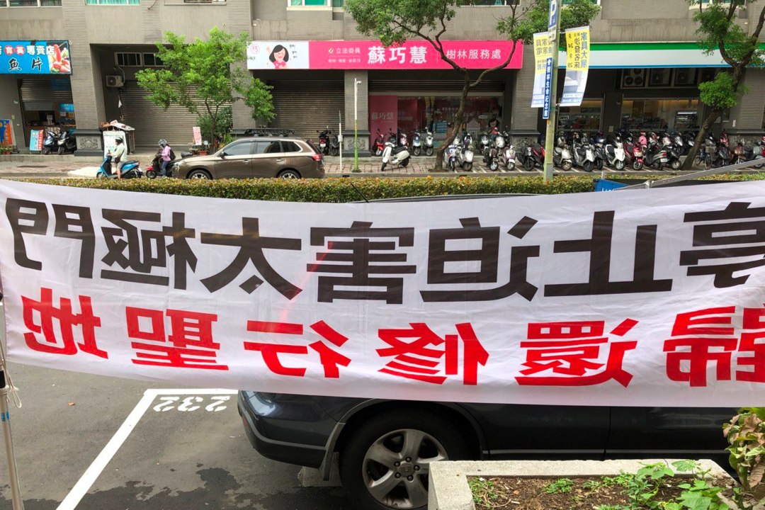 圖1:志工籲蘇巧慧委員為太極門人民發聲,停止政府不公不義的迫害,平反假案,返還民產。