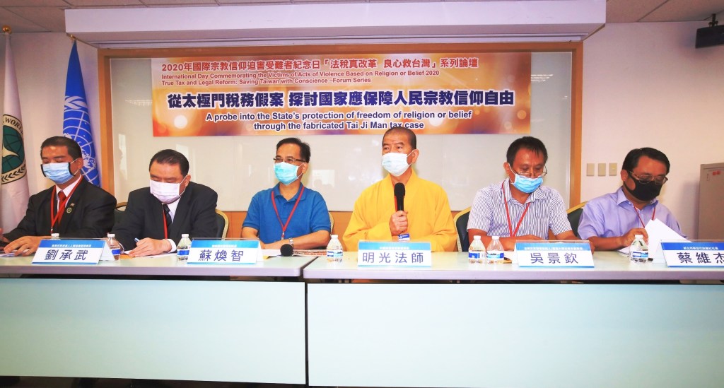 中國宗教徒協會理事長明光法師強調:太極門案事理俱明,行政機關應該依最高法院判決太極門無罪無稅、監察院調查證實檢察官跟國稅局皆有侵害人權之違法,呼籲停止違法課稅、違法拍賣人民財產,停止迫害人民信仰、思想、文化選擇自由。