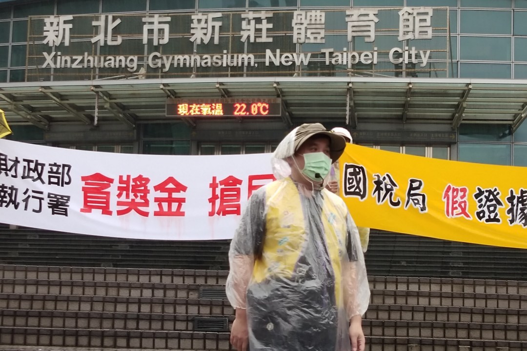圖5:志工不畏風雨,在新北市新莊體育館前進行街宣與法稅開講。
