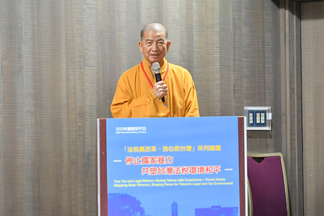 9月21日為聯合國國際和平日,當日在台大醫院國際會議廳的一場以「停止國家暴力 共塑台灣法稅環境和平」為題的「法稅真改革、良心救台灣」系列論壇中,中國宗教徒協會理事長釋明光法師談及政府若做錯了,要勇於改錯,何況一般人民也是這樣,並引佛教箴言「常見己過,與道相應。」願在大家共同努力之下,將中華民國台澎金馬地區,建設成人間淨土。