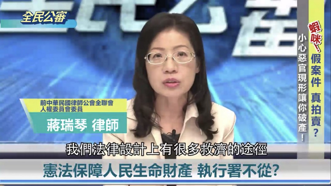 圖一:前中華民國律師公會全聯會人權保護委員會委員蔣瑞琴律師指出,行政執行署種種做法明顯黑箱,強拍民產如此急切所為何來?