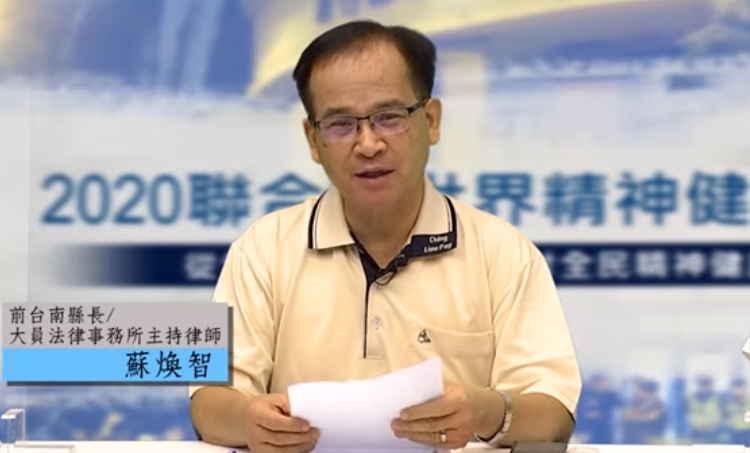 當今氣候變遷、國際局勢動盪不安,加上去年底新冠肺炎疫情席捲全球,造成人心恐懼、悲傷與不安,嚴重影響全球經濟發展與社會安全。呼應聯合國10月10日世界精神健康日,許多民團共同舉辦了論壇,盼能在後疫情時代找到安定人心並有利於國家發展與世界和平的方法。前台南縣縣長蘇煥智律師參與提到,國家政策常常是造成人民痛苦的來源,如果人民要健康,政府要先健康。