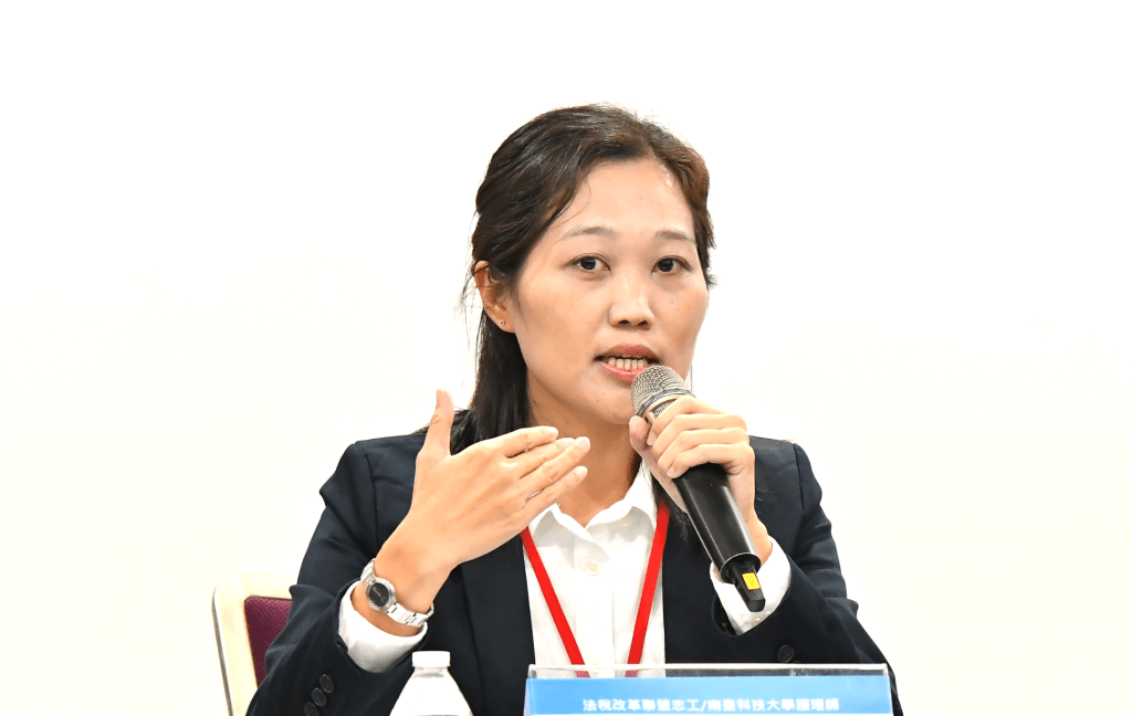 圖說:專科護理師黃小姐,以醫療的觀點比喻,認為台灣法稅已到病入膏肓,應廢除獎金制度、落實違法官員懲處機制,全面立法改革,就有機會革除法稅弊病。