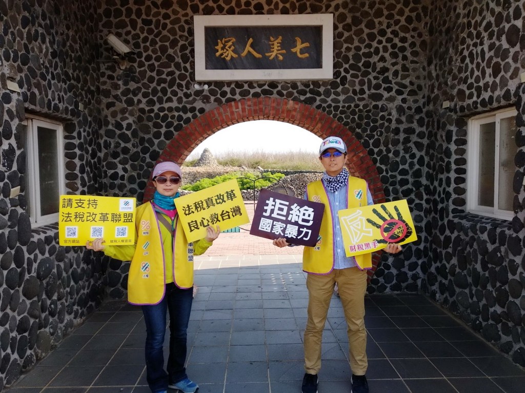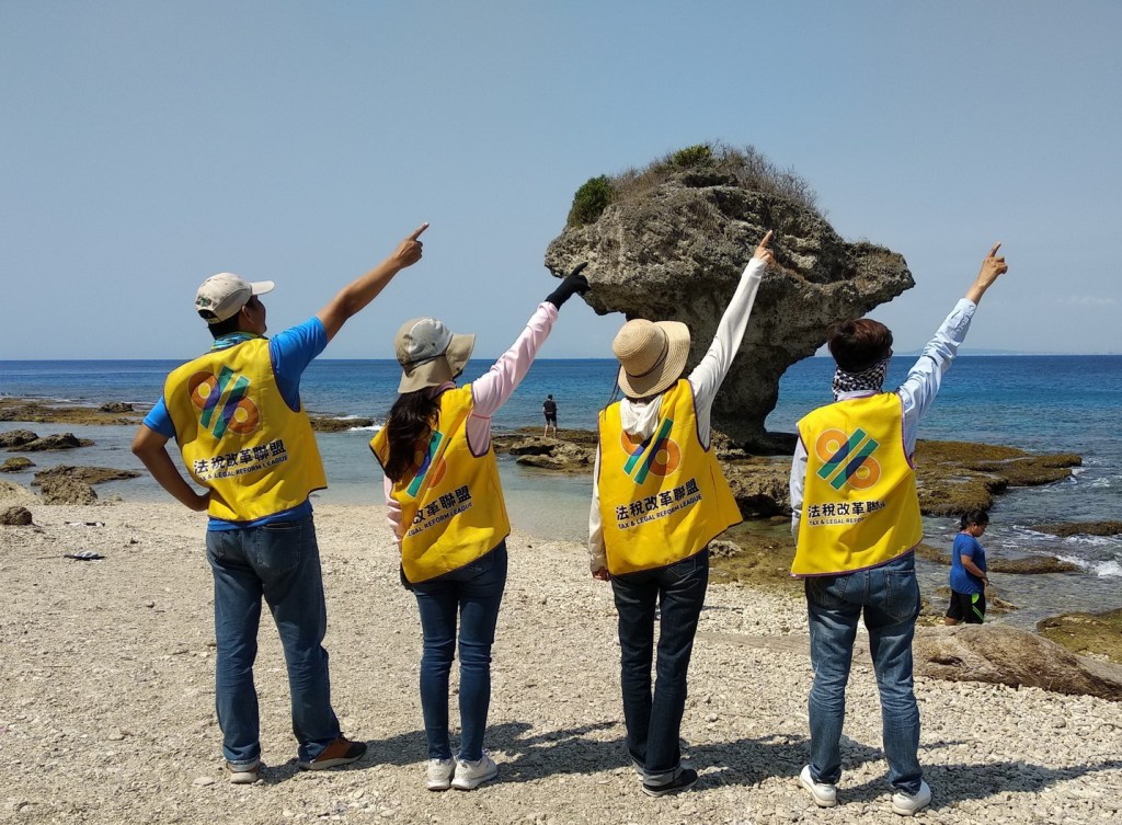 圖三:澎湖地區所有地方行政首長及村、里長100%全數參與連署稅改宣言,圖為L志工與法稅改革聯盟志工在澎湖七美島。