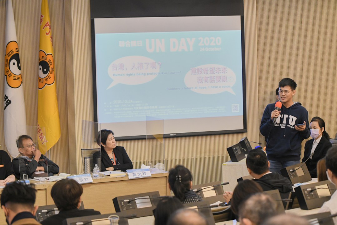 當人民面對公權力恣意擴張違法侵害時,小蝦米對大鯨魚,如何自保自救?台灣兩公約國家報告審查會議將到,人權保障真落實了?10月24日,近30個民團共同舉辦「2020年聯合國日—台灣,人權了嗎?建設希望未來 我有話要說」論壇及公共對話,與會的青年紛紛提出問題,與專家對談,從919竹北事件和太極門假案,探討言論自由、集會自由、錯誤判決被違法執行等議題,期盼政府積極調查違法公權力,改正錯誤。