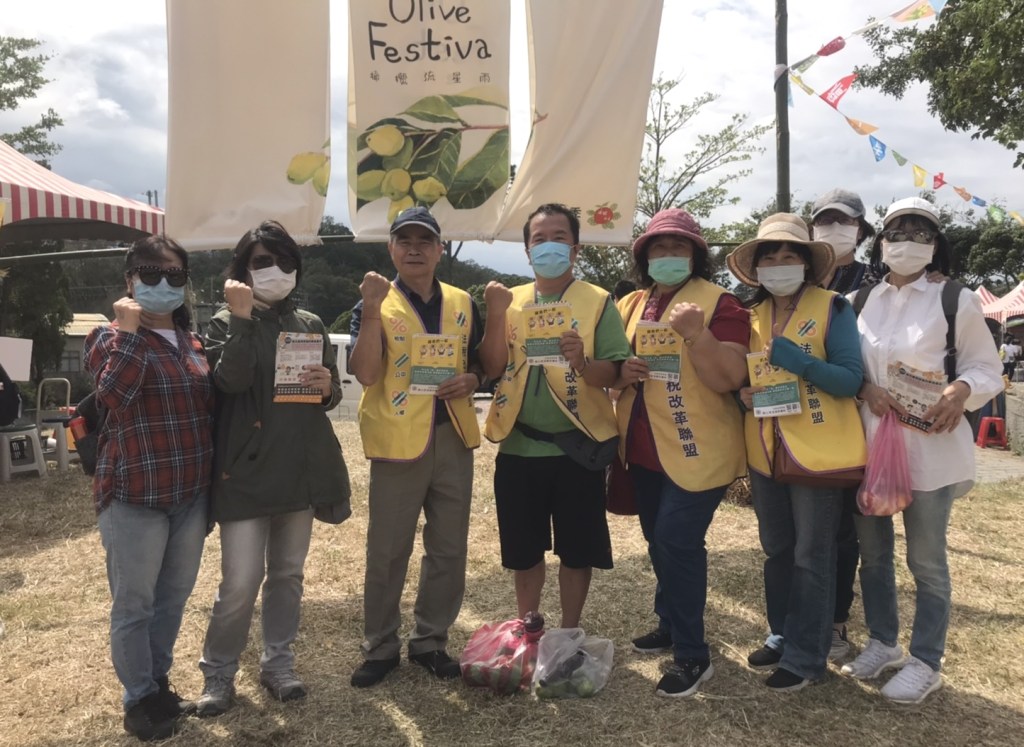 圖2:法稅志工於10月17日橄欖節也到場發傳單,分享法稅新知。
