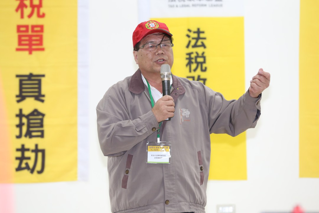 圖一:前台大法學院副院長邱榮舉呼籲大家共同努力,廢獎金、救冤案、護人權!
