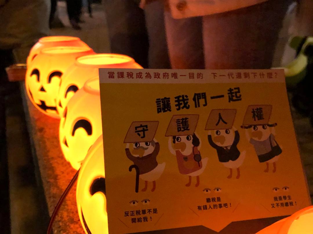 10月31日萬聖節,新竹市舉辦了萬聖節的遊行活動,帶來了上萬的人潮。為宣導賦稅人權,法稅改革聯盟、平反1219行動聯盟的志工披上黑色的斗篷,貼上QRCORD以及廢獎金、護人權、救冤案的三大訴求,加入萬聖節遊行的行列做法稅宣導。