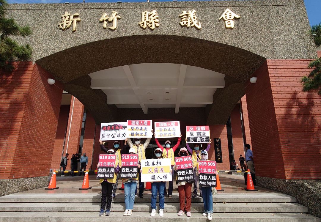 圖說:法稅改革聯盟、平反1219行動聯盟的志工在縣政府前面為台灣的民主自由加油打氣。
