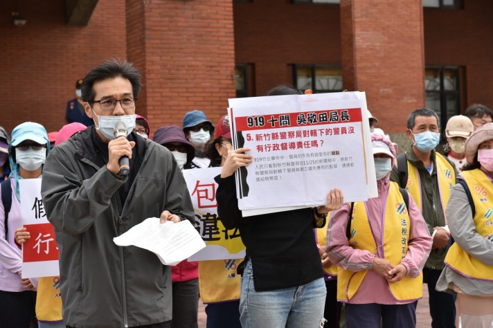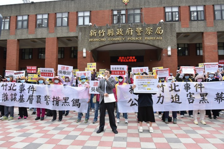 【記者陳育儒/新竹報導】針對919竹北事件,11月25日新竹縣警局發佈新聞稿,表明對於違法警員暫不做懲處,一切靜待司法審判後決定。該新聞稿已經被縣政府及多處媒體引用。新聞稿一出,引起全國聲援黃姓志工媽媽的民眾不滿,認為縣警局並沒有澄清黃姓志工媽媽被違法逮捕的真相,反而放煙霧彈利用一件聲請案件判決,來誤導民眾,以為司法已經審判,有欺騙縣長、議長及民眾的嫌疑。11月27日縣警局門口聚集聲援民眾及民團志工,要求吳局長實踐「一個道歉、一個真相、一個承諾」。法盟志工跟受害者家屬也親自拜訪縣長、議長,提醒下架不實新聞,以免自誤誤人,有損清譽,縣長由秘書室徐元雄主任代為了解轉告,議長則由議長機要秘書林福君代為轉達。
